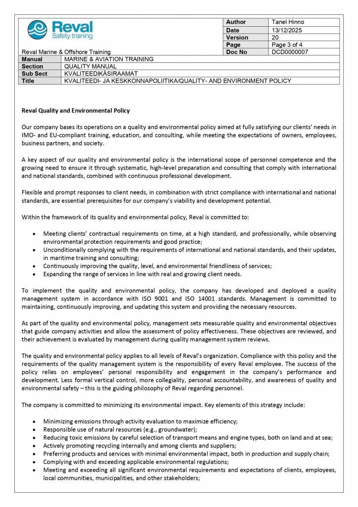 If I take OPITO BOSIET, FOET or CA-EBS trainings in Reval, are these accepted in North Sea by Noth Sea operators.